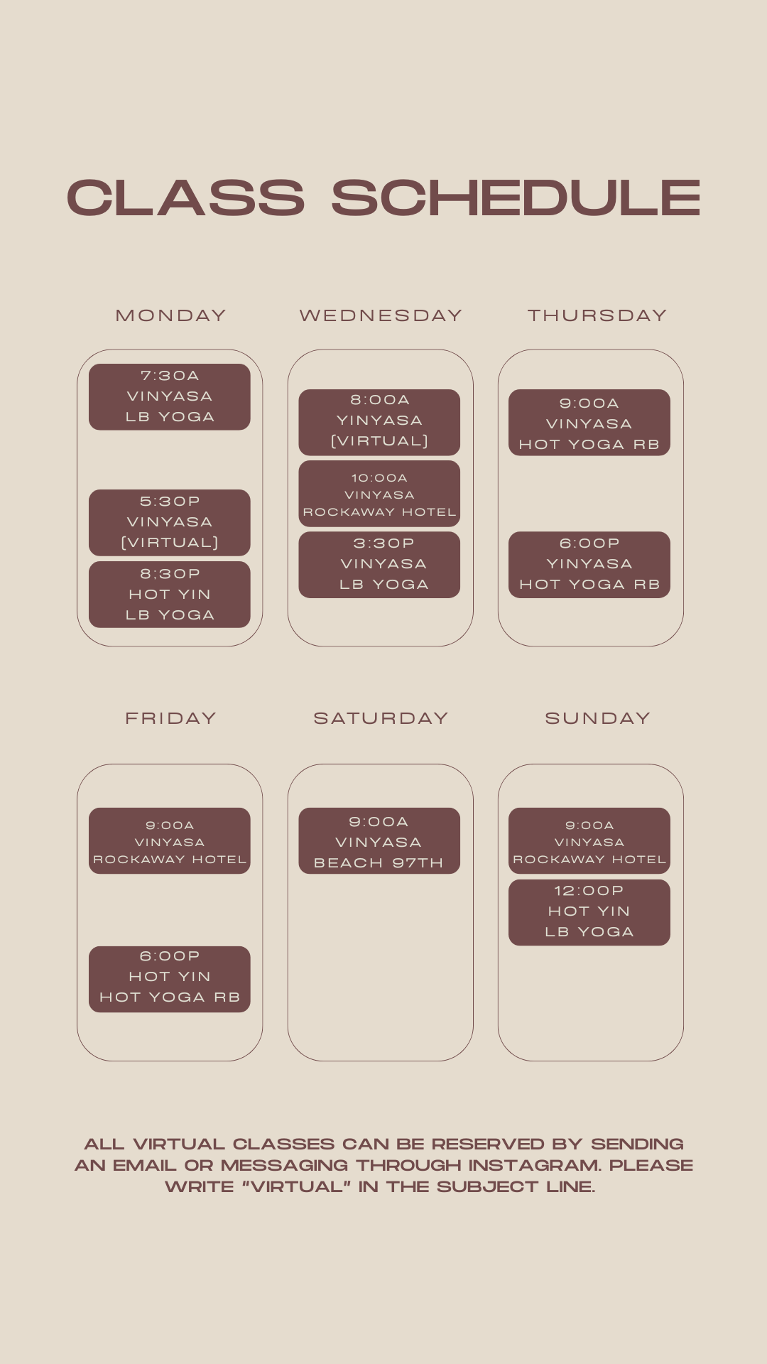 SCHEDULE vinyasa, yin, meridian yoga therapy + meditation book virtual Book Long Beach yoga book hot yoga Rockaway Beach book rockaway hotel